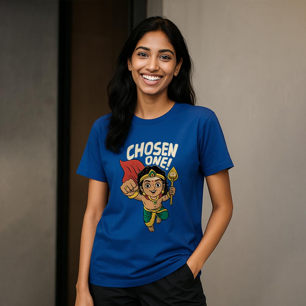 Step into destiny with the Chosen One - Kandhan Edition T-shirt. Featuring a striking design of Lord Kandhan, the embodiment of courage, wisdom, and divine leadership, this soft, breathable cotton tee blends comfort with inspiration. Perfect for casual wear or making a bold spiritual statement, it celebrates strength, valor, and the path of the chosen